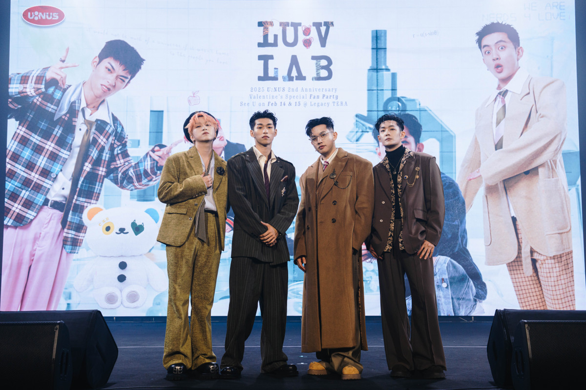人氣全創作唱跳男團U:NUS於2月14日及2月15日連兩天在Legacy TERA舉行「U:NUS [ LU:V LAB ] Valentine’s Fan Party」情人節粉絲派對,節目內容由U:NUS親自操刀十分豐富,團員們化身實驗室科學家,陪伴UNi們闖層層關卡外,更近距離甜蜜交流放送福利。見面會開場,U:NUS即帶來充滿派對氛圍的〈D.N.D 勿擾〉為兩天活動揭開序幕,也十分有心換上截然不同風格的妝造,更請來新生代人氣主持人木木(林葦妮)主持,且為防止聊到忘我或不遵守遊戲規則,木木特地準備管理秩序的哨子和奶嘴,表示:「不乖就會使用,相信歌迷很想看大男孩戴奶嘴吧!」身為熟人的他們一搭一唱使現場笑果十足。創作靈感爆棚的U:NUS,這次再度驚喜發表團體及個人新歌,秒將現場打造成大型舞廳,公司也將原創IP周邊「哈尼Uz熊」製成大型充氣布偶供粉絲們拍照打卡,近5小時豪華的視聽饗宴讓現場氛圍嗨翻天,歌迷意猶未盡直呼:「物超所值!」
